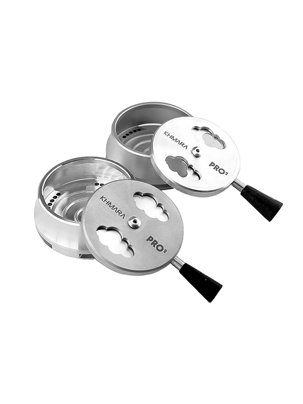 Калауд для кальяну Khmara (Хмара) Pro2 – пристрій керування жаром від української компанії Khmara. Khmara Pro виготовлений токарним способом із цільного алюмінію, що мінімізує деформацію виробу під впливом температури вугілля. Калауд не боїться пригорання тютюну, легко миється, стійкий до корозії. Якісний пластик добре зафіксованої ручки кришки практично не гріється. Масивніший за свої аналоги та через це прогрівається довше, але тримає температуру на протязі всього сеансу стабільніше.