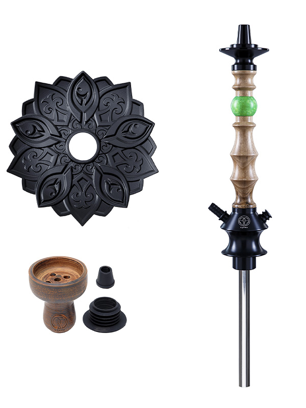 Karma Hookah – український виробник кальянів преміальної якості з використанням натурального дерева, епоксидної смоли, анадованого алюмінія та нержавіючої сталі. Діаметр шахти в 14мм забезпечить м’яку класичну тягу, комплектна прямоточна чаша (об’ємом 18-20г) – простір для експериментів, блюдце з анодованого алюмінію – неповторний дизайн, а з’єднання шахти з колбою на ущільнювачі – практичність у використанні.