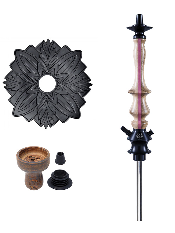 Karma Hookah – український виробник кальянів преміальної якості з використанням натурального дерева, епоксидної смоли, анадованого алюмінія та нержавіючої сталі. Діаметр шахти в 14мм забезпечить м’яку класичну тягу, комплектна прямоточна чаша (об’ємом 18-20г) – простір для експериментів, блюдце з анодованого алюмінію – неповторний дизайн, а з’єднання шахти з колбою на ущільнювачі – практичність у використанні.