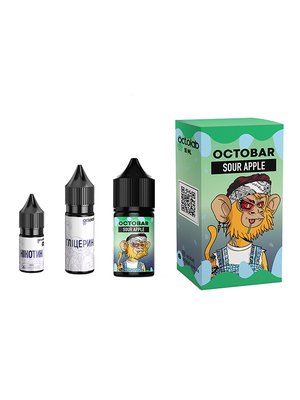 Набір премікс Octobar NFT Apple Grape 30мл 0-50мгКислуватий смак яблука надає нотку свіжості та енергії, створюючи яскраву та насичену ароматику для тих, хто віддає перевагу кислоті з фруктовими нотками.