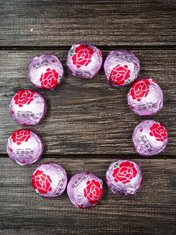 Шу Пуер з натуральною трояндою. Призначений для тих, хто бажає пікантності та різноманітності у смаку. Землянисті ноти пуеру майже моментально переходять в посмак троянди. Вага порції 5г.