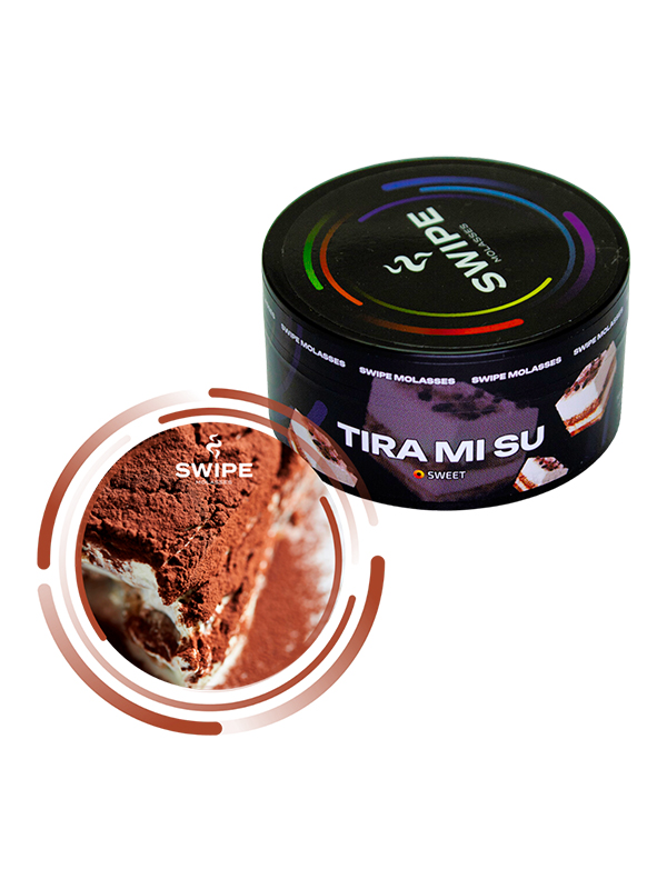 Суміш для кальяну Swipe 50г Tira Mi Su (Тірамісу) – какао, шоколад, вершковий сир, ароматна кава та привабливий післясмак улюбленого тістечка. Саме такий солодкий вибух очікує тебе при кожній затяжці смакуєш ложку кавового бісквіту просоченого вершковим кремом.